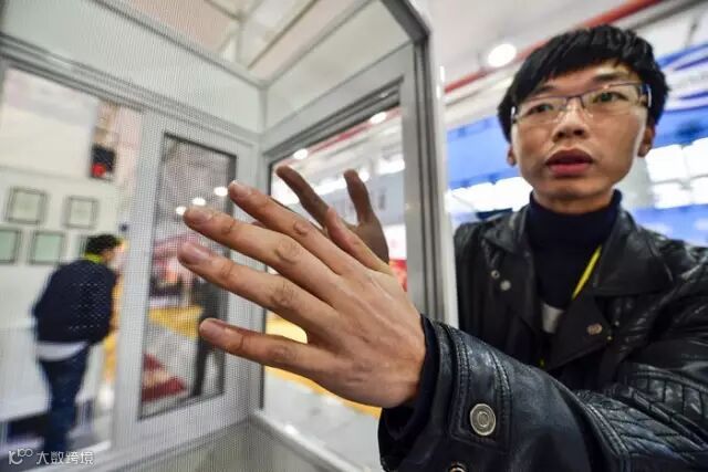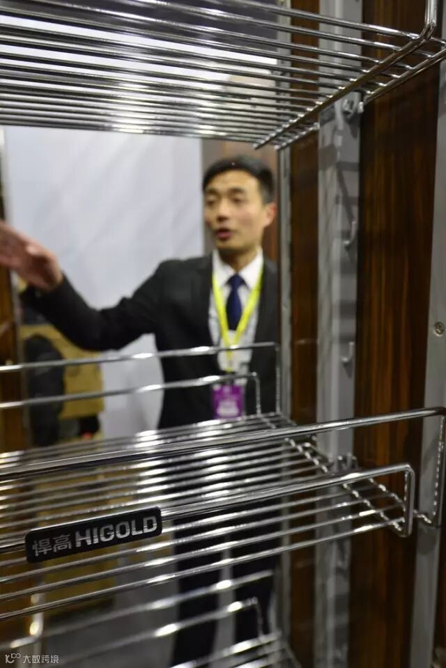 走到2号展馆,记者看到一长溜儿的卫浴、阳台设备的展位,注意到一位店员正在玩着升降型的阳台晾衣架,他站在晾衣架的正下方,拿着遥控器对着头顶按了一下按键,晾衣架就开始徐徐降落。眼看着晾衣架都快降下来撞到他头顶,这店员丝毫不躲,还特别镇定。没想到,晾衣架在距离他头顶不到一厘米的地方自动停了下来——这一幕引发了好几名市民驻足观看。
