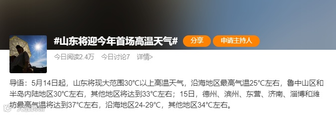 预计15—17日,鲁西北和鲁中地区将出现35℃以上高温天气。