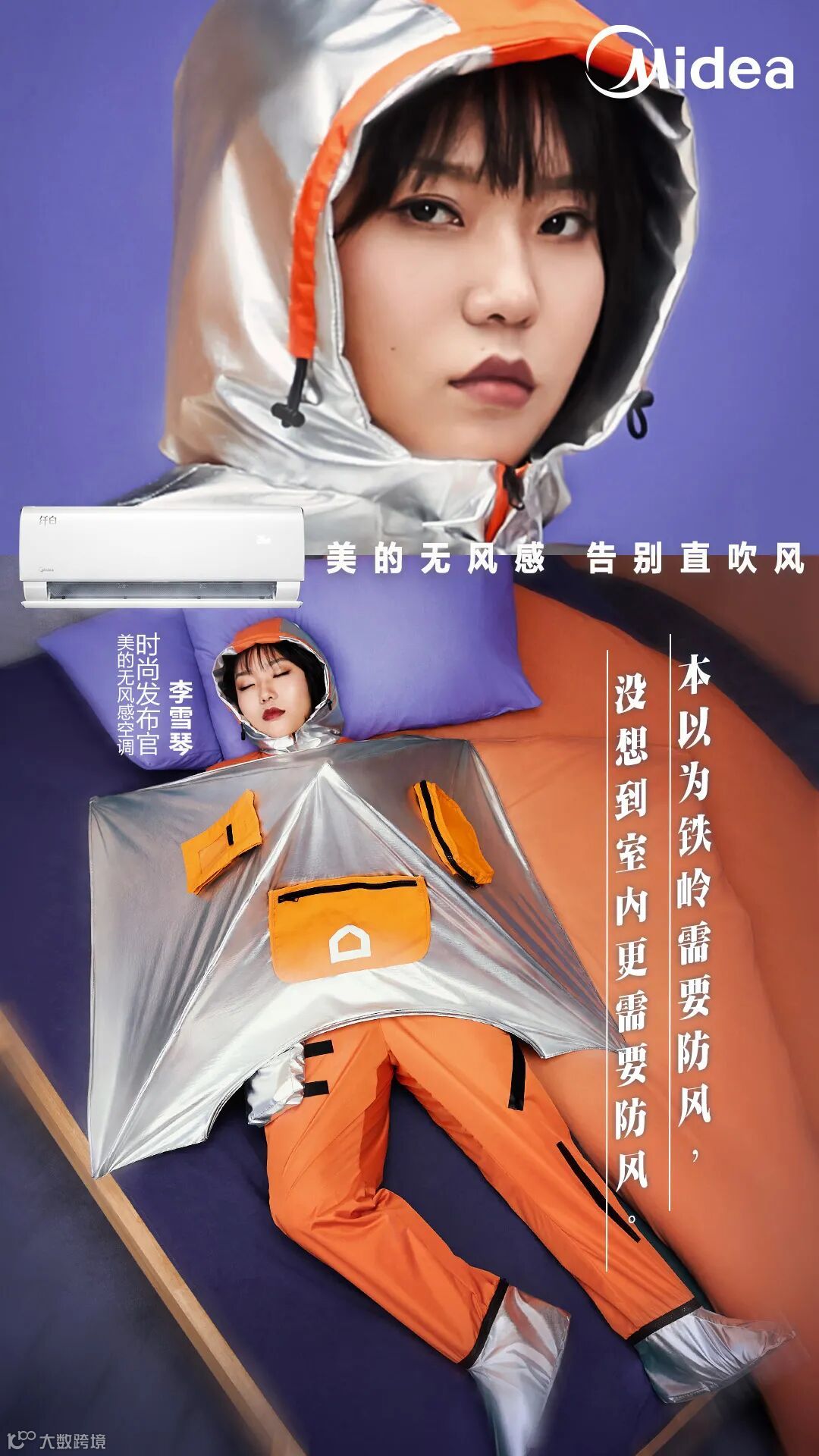不得不说“无风感”让空调更人性化了,但“无风感”看不见、摸不着、听不到,怎么跟用户沟通呢?同时双11所有品牌都开启了肉搏战,广告比平时都硬了那么一点。在讨论了几轮之后,我们还是决定从空调直吹的痛点切入,来个反向操作,告诉用户室内也需要防风,研发首款室内防风衣给还没用上美的无风感空调的人。
