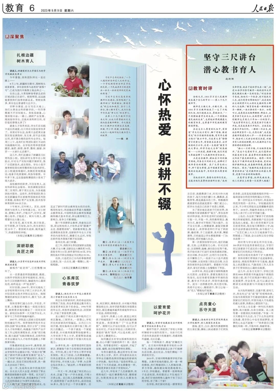 正是这些教师,耕耘在不同的教育领域,用各自不同的方式,诠释对于教师责任的理解。在广大学生的心中,种下爱与希望,在中国教育事业发展的壮美画卷中,书写朴素而厚重的篇章。