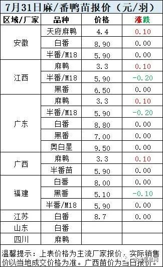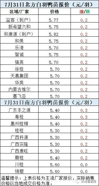 一、7月30日晚至7月31日 白羽肉鸭报价