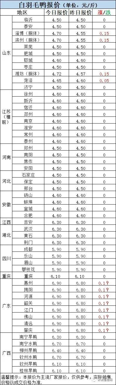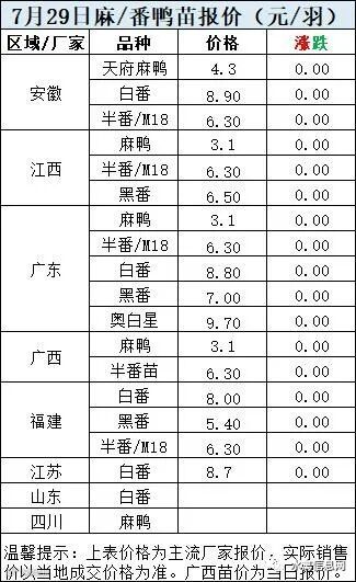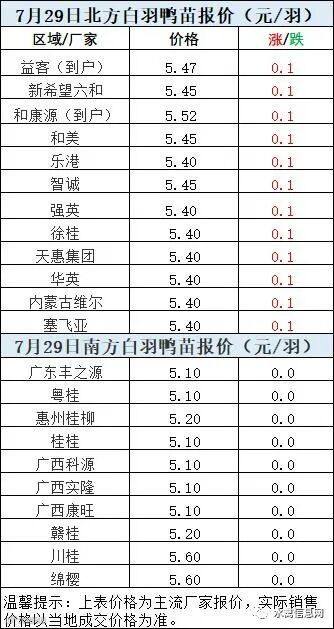 一、7月28日晚至7月29日 白羽肉鸭报价
