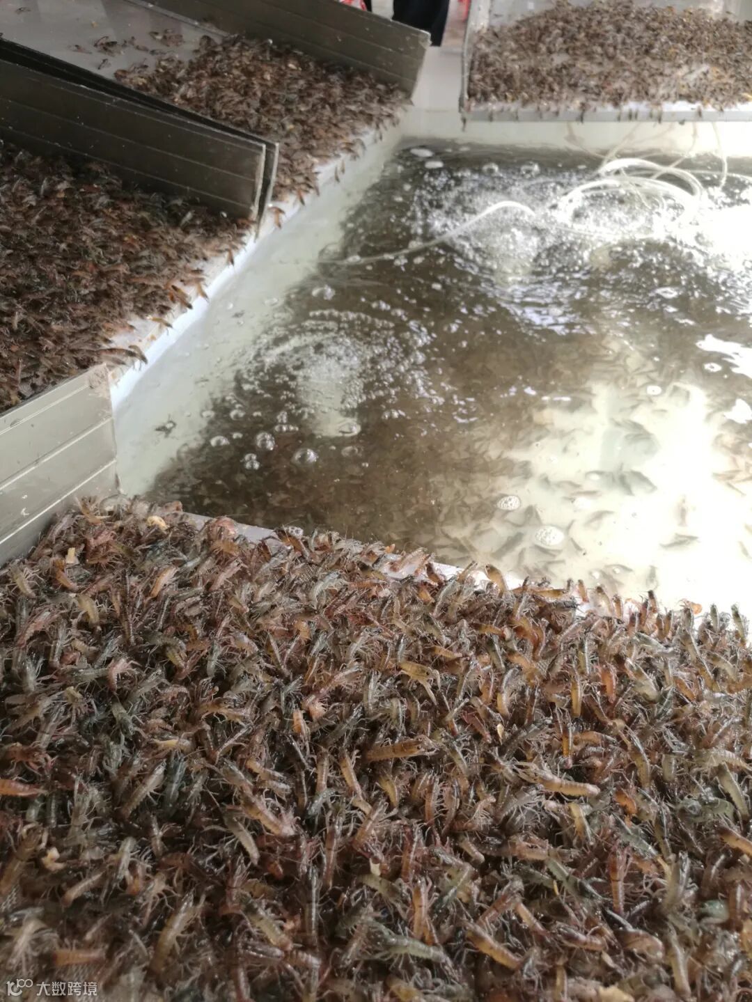 另外还有一点就是从台湾那边学过来的“过板选苗”,也就是俗称的爬赛道。苗场会把虾苗放到一块长1米左右、有一定倾斜角度的宽铁板一头,另一头下面装有接虾苗的容器,虾苗从起点这一头被赶着往终点容器那边爬,成功爬过去进入容器的苗即为“体格强壮”的苗,然后拿来销售给养殖户。这里面有一个关键点,就是这种选苗法对大规格的苗可能影响不大,但对小规格的苗却影响非常巨大,因为经过爬赛道后这些虾苗一般都会或多或少受到损伤,活力也大打折扣。