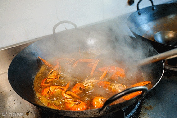 因为虾子太大、壳硬,烹饪也更费工夫,每只虾经过开背后入味会更佳透彻。
