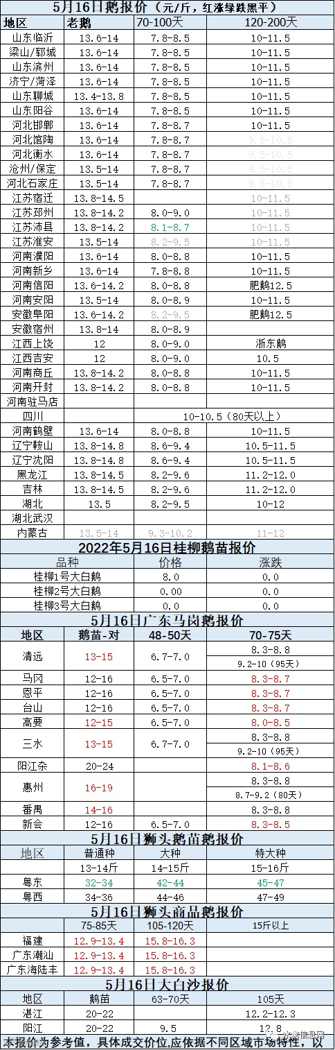 2022年5月16日各品种鹅苗价格