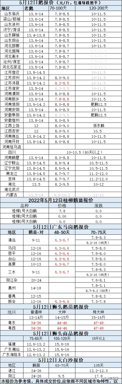 2022年5月12日鹅种蛋价格(元/枚)部分停报