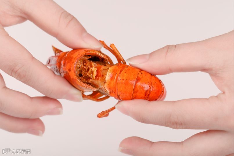 剥掉虾头外壳,吃掉虾黄和虾膏。