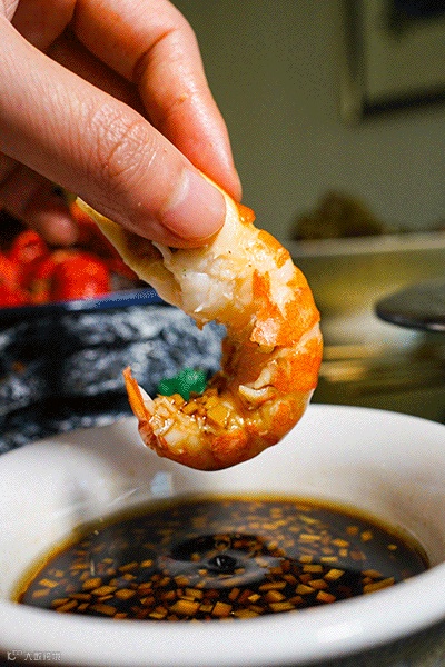 从虾腹轻轻拨开虾壳,完整虾肉即可展现。