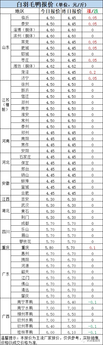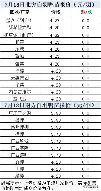一、7月17日晚至7月18日 白羽肉鸭报价