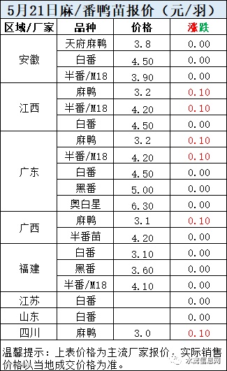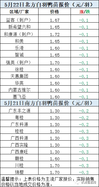 一、5月21日晚至5月22日 白羽肉鸭报价