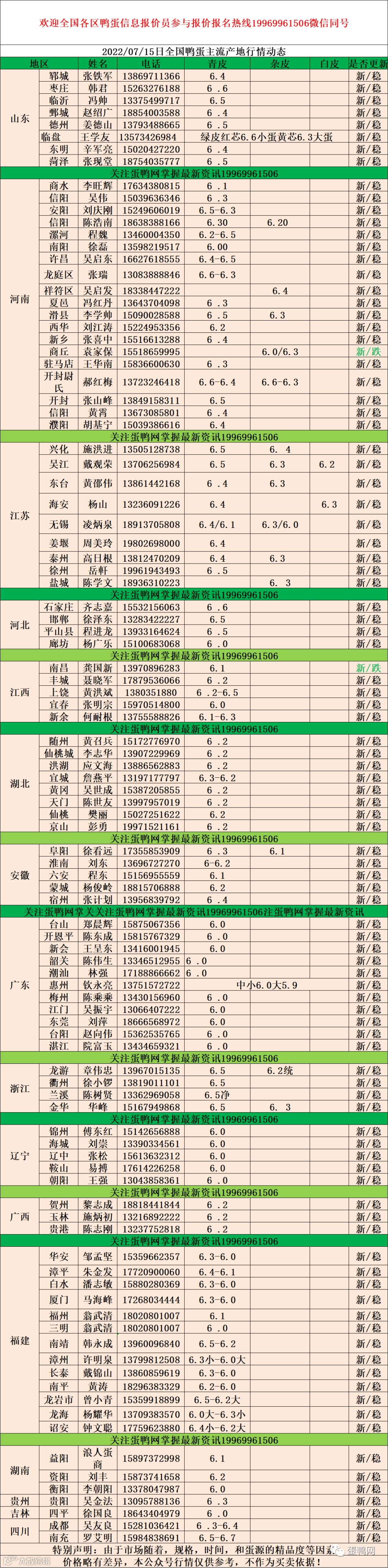 2022年07月15号鸭蛋报价