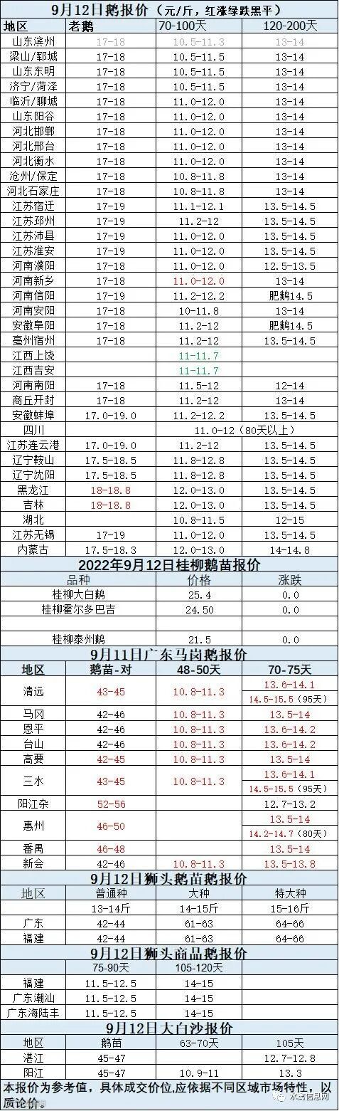 2022年9月12日各品种鹅苗价格