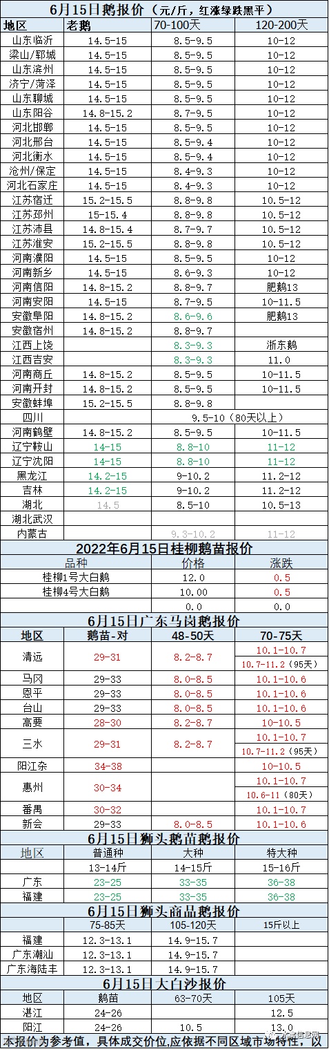 2022年6月15日鹅种蛋价格(元/枚)部分停报