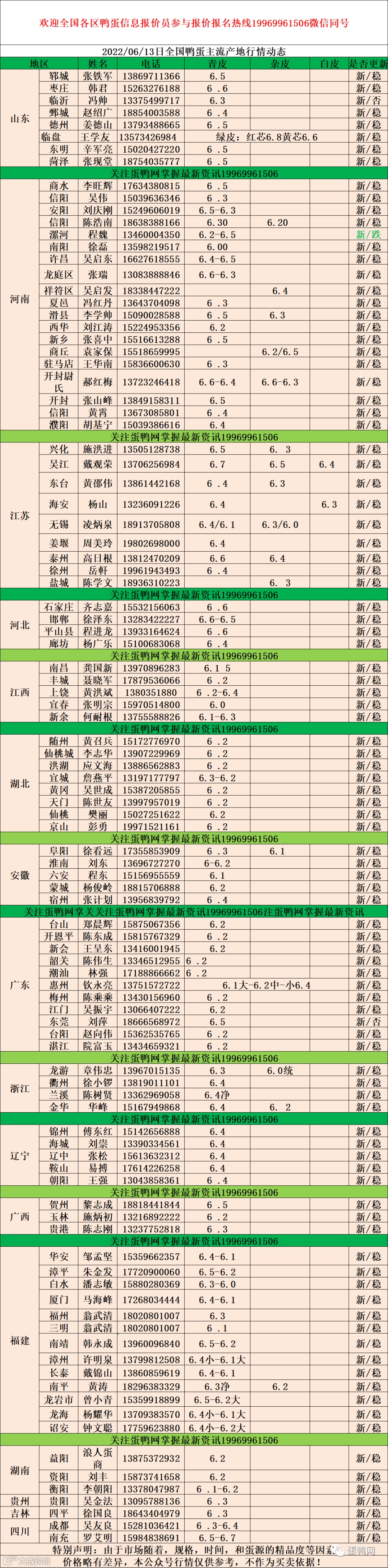 2022年06月13日鲜鸭蛋价格: