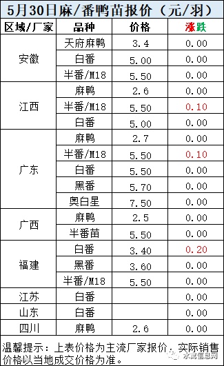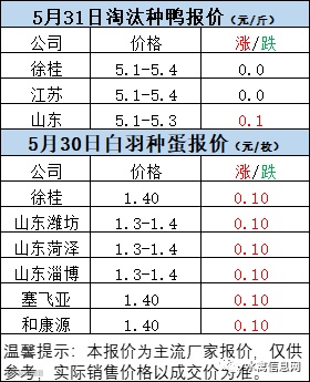 一、5月30日晚至5月31日 白羽肉鸭报价
