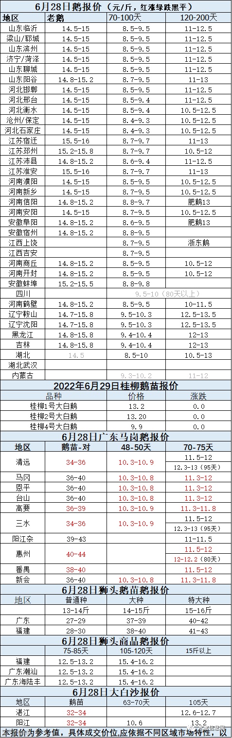 2022年6月28日鹅种蛋价格(元/枚)部分停报