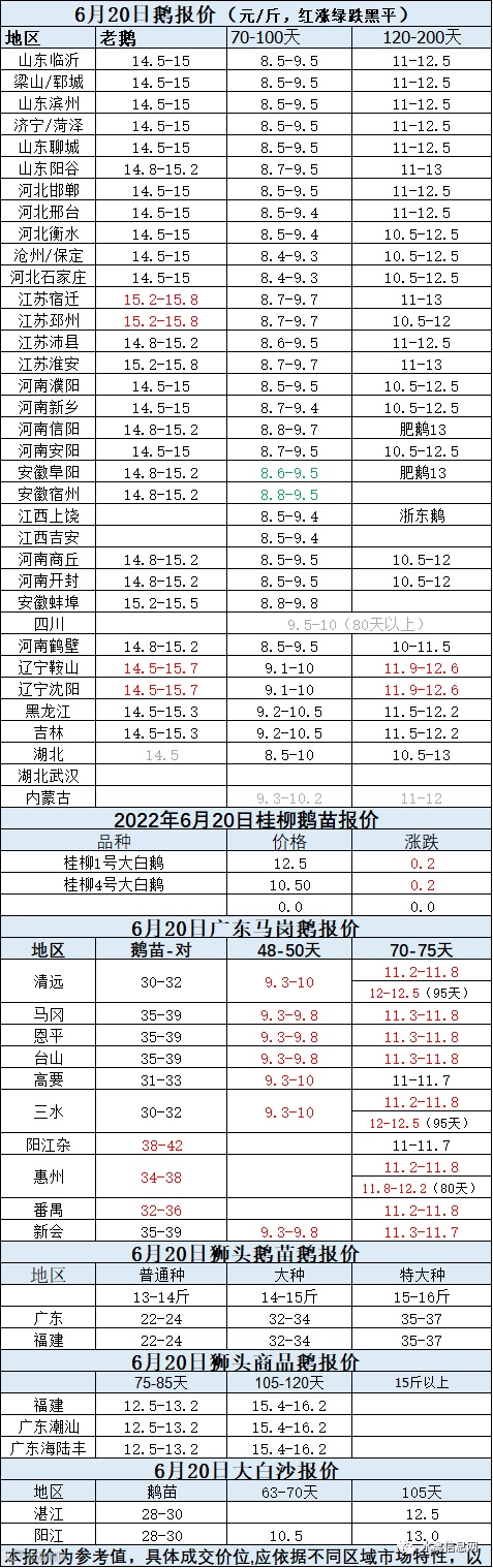 2022年6月20日各品种鹅苗价格