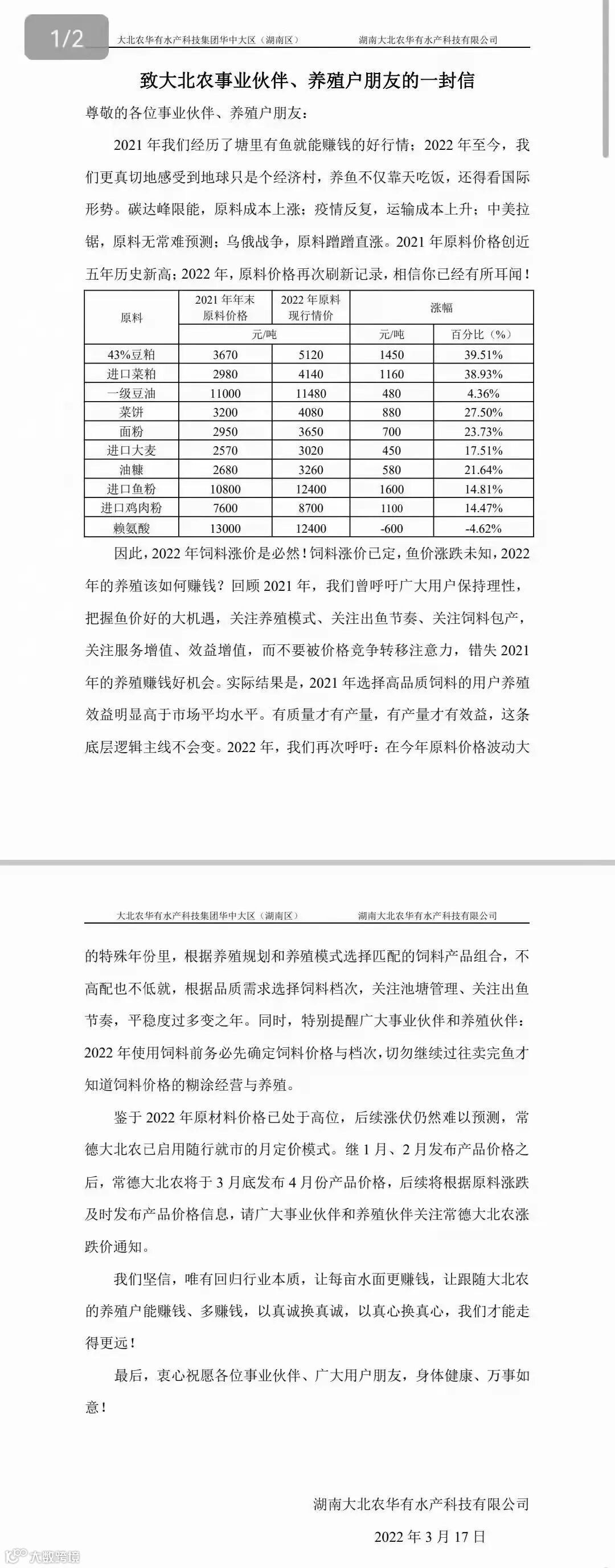 给事业伙伴、养殖户朋友的一封信共勉