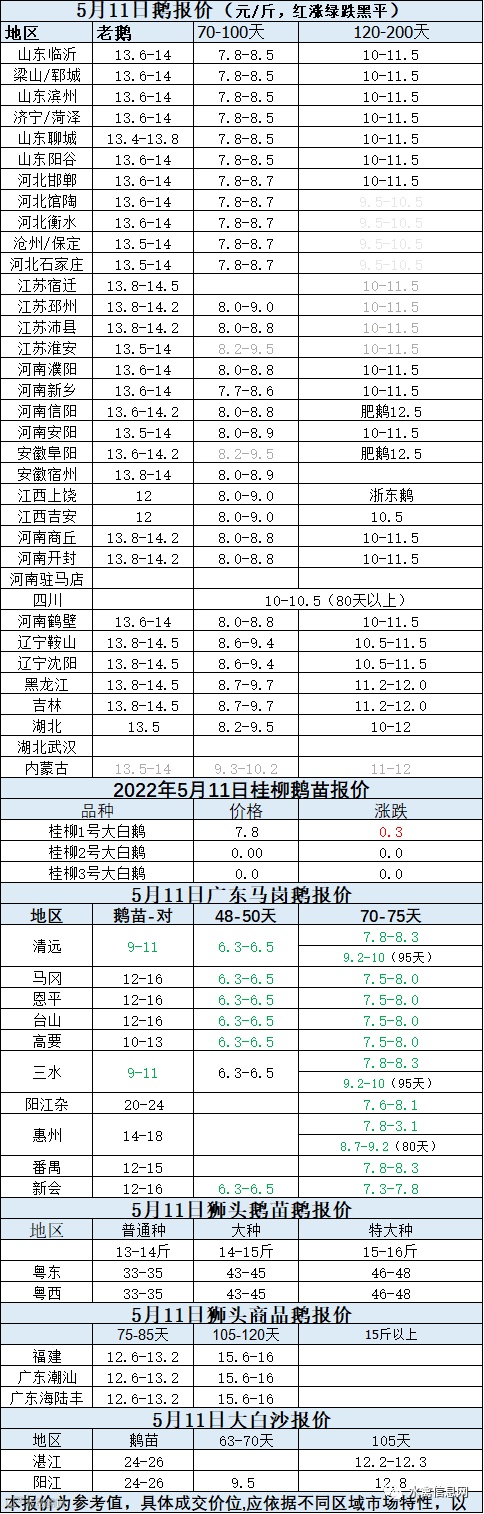 2022年5月11日鹅种蛋价格(元/枚)部分停报