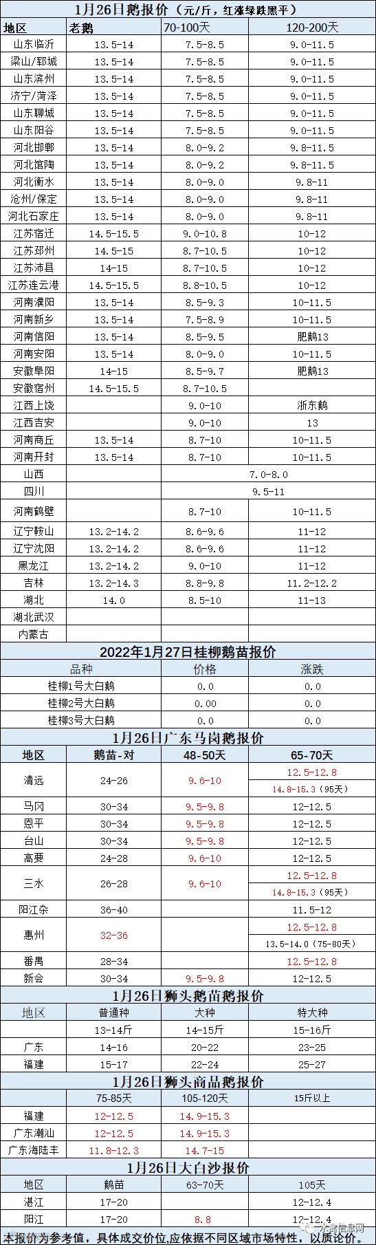 2022年1月26日各品种鹅苗价格