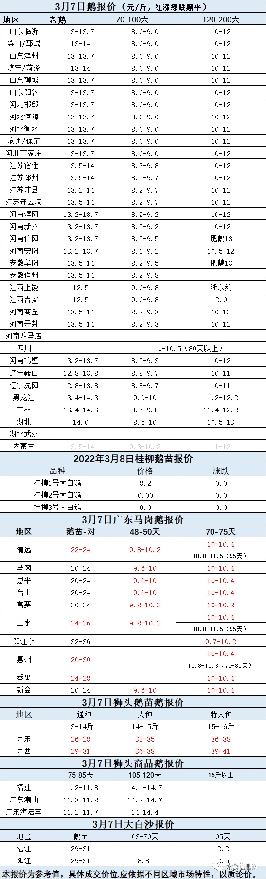 2022年3月07日各品种鹅苗价格