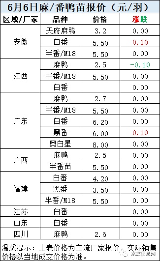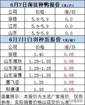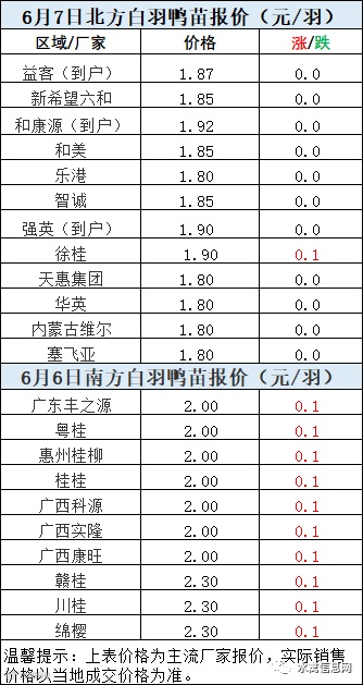 一、6月6日晚至6月7日 白羽肉鸭报价