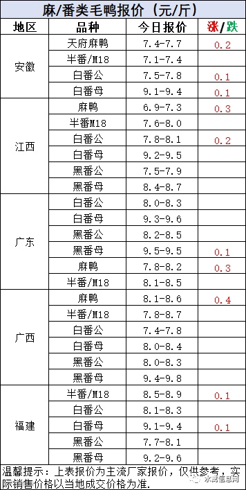 毛鸭报价