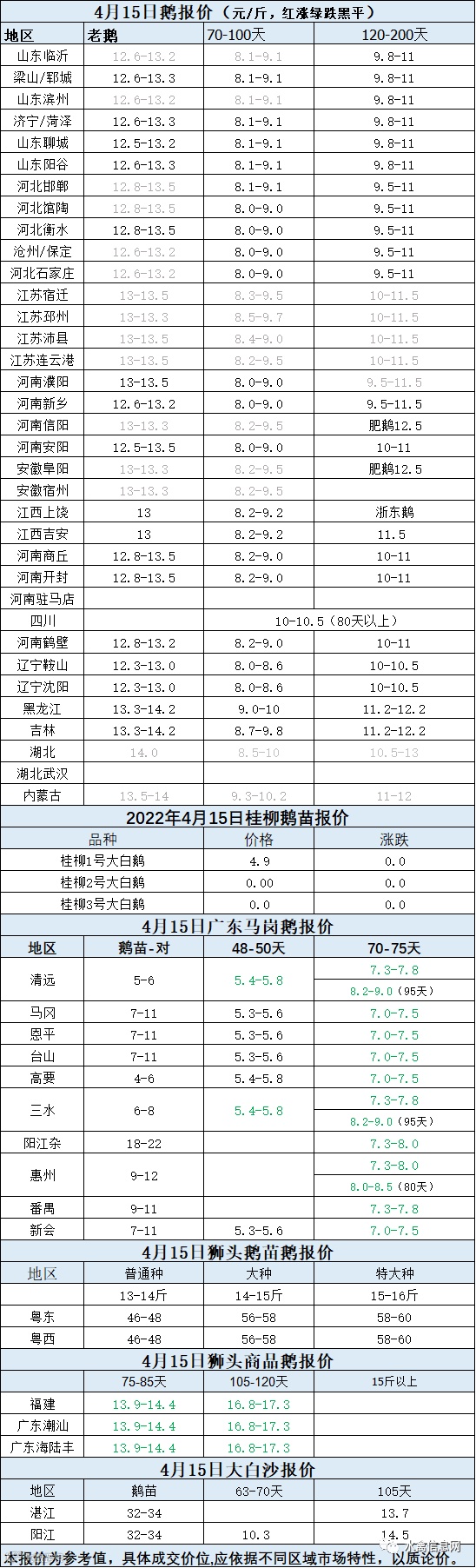 2022年4月15日各品种鹅苗价格