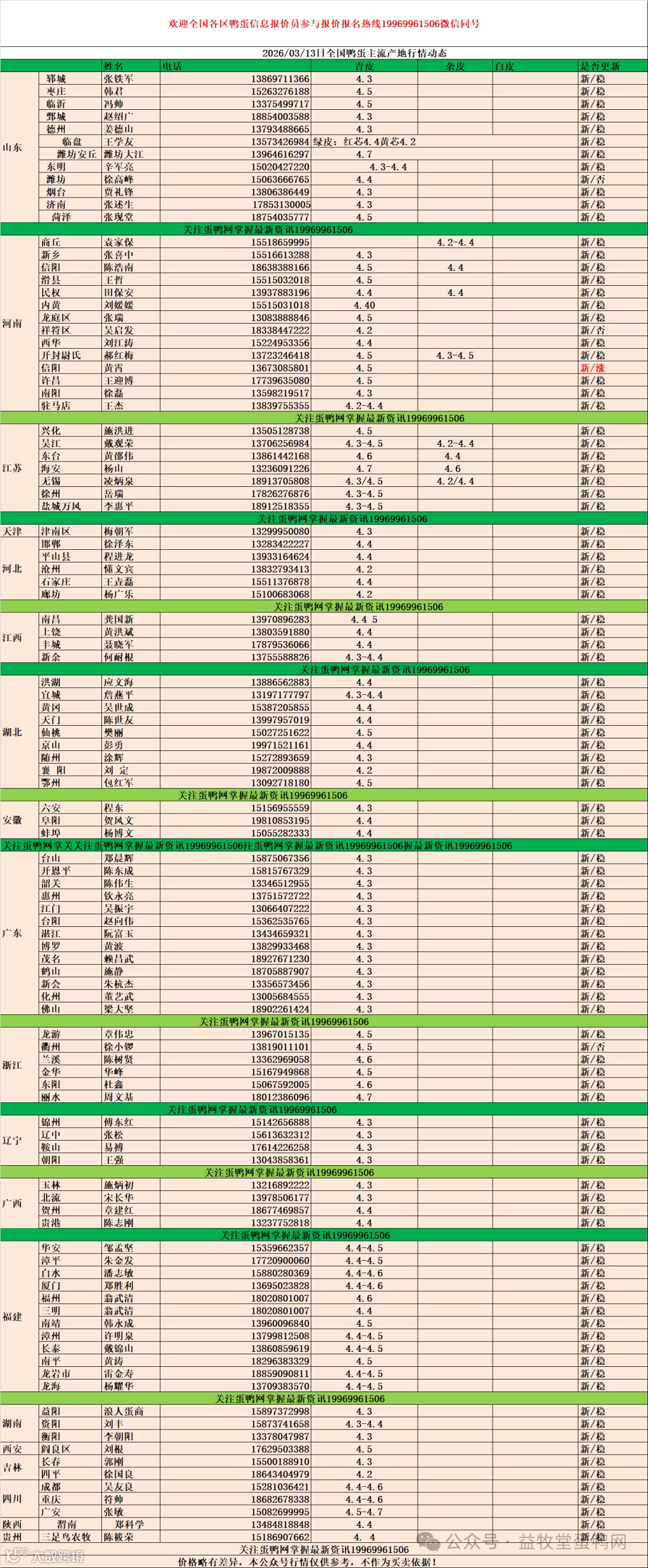 (由于地区、品质、市场需求差异,本报价仅供参考,实际成交请以当地实际价格为准)。