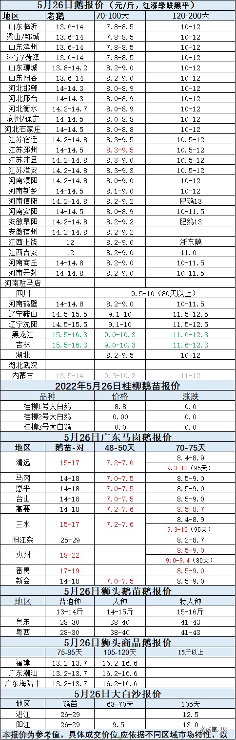 2022年5月26日鹅种蛋价格(元/枚)部分停报
