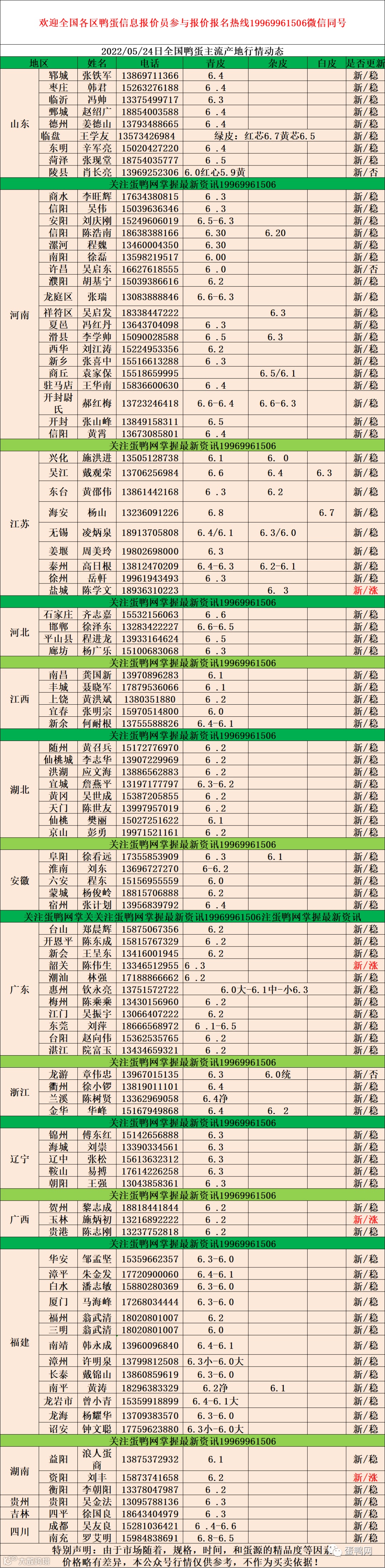 2022年5月24号鸭蛋报价