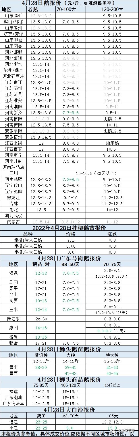 2022年4月28日鹅种蛋价格(元/枚)部分停报