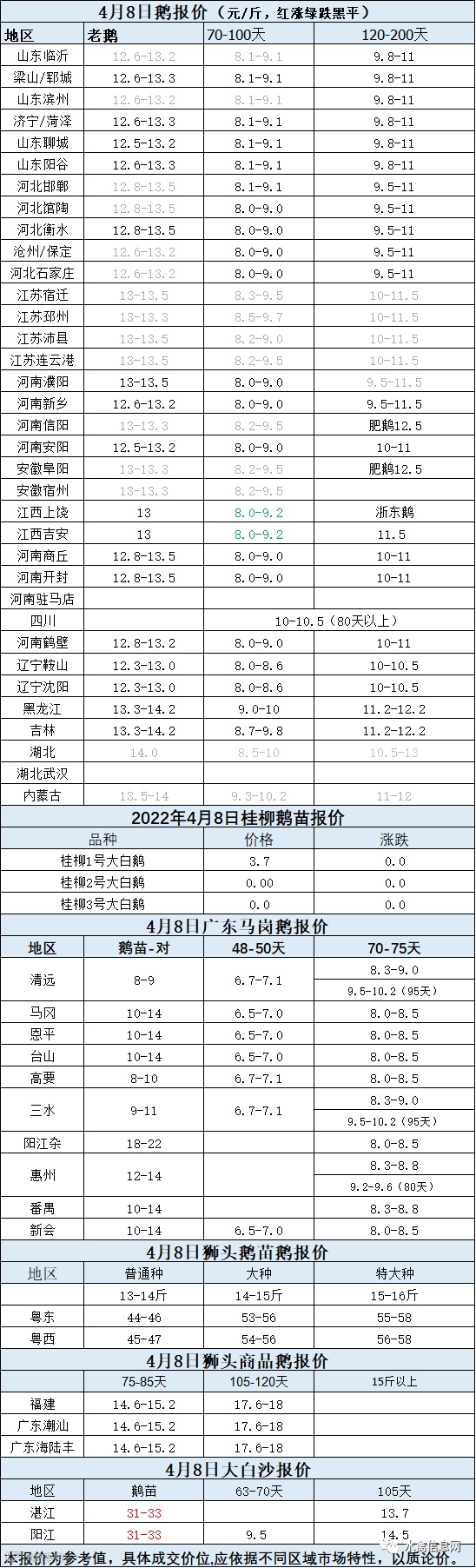 2022年4月08日各品种鹅苗价格