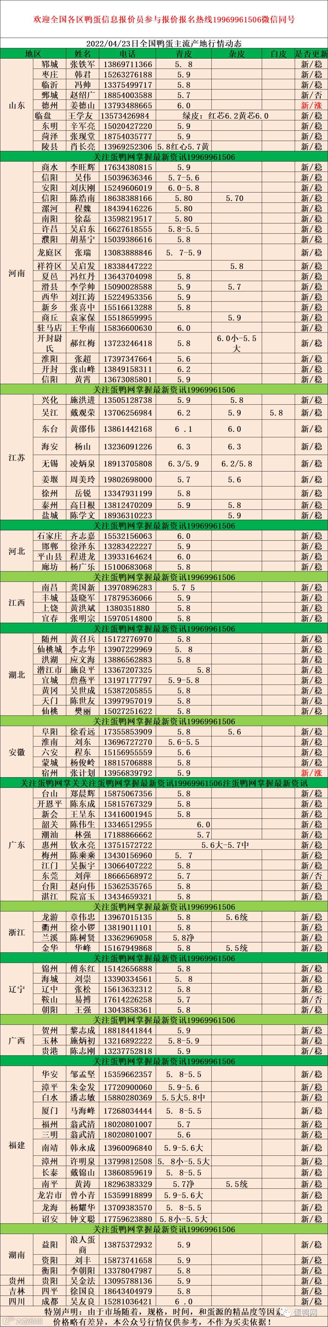 2022年04月23日鲜鸭蛋价格: