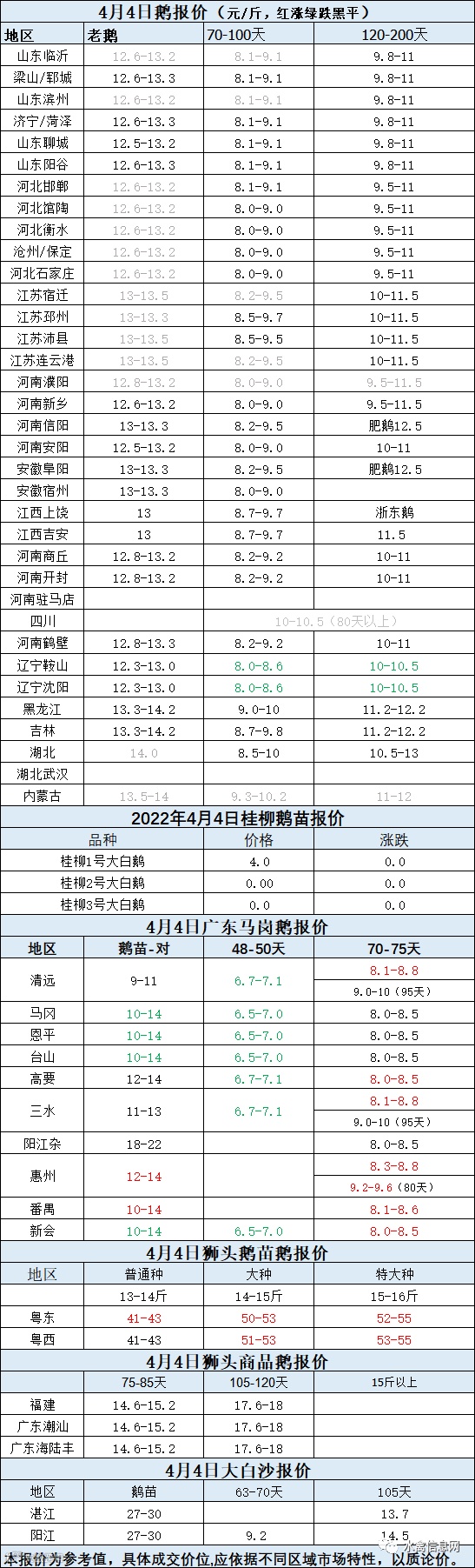 2022年4月04日各品种鹅苗价格