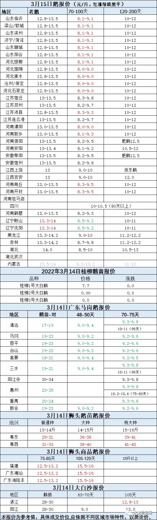 2022年3月14日各品种鹅苗价格