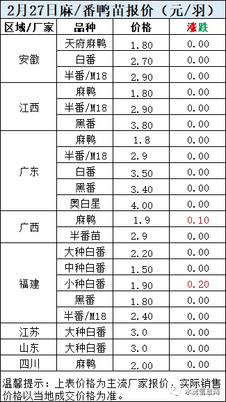 一、2月27日晚至2月28日 白羽肉鸭报价