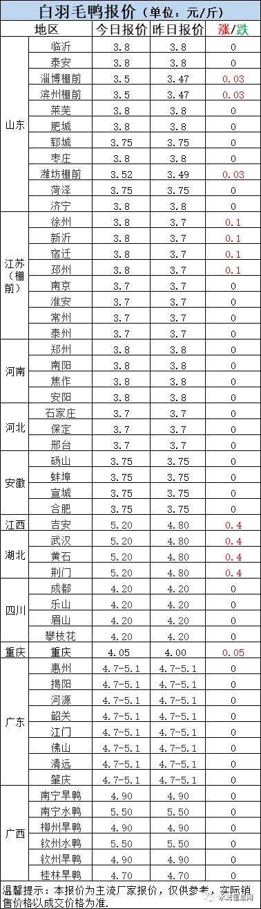 今晚北方毛鸭报价暂稳,局部回弹。毛鸭略有走强主要来源于成本压力。