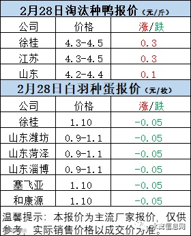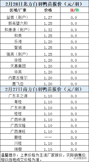 一、2022年2月28日白羽鸭苗报价