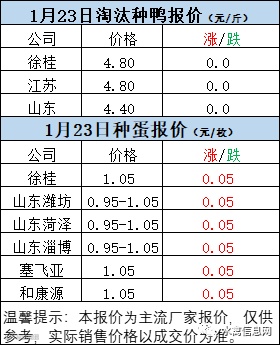 一、1月22日晚至1月23日 白羽肉鸭报价