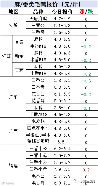 麻/番鸭苗弱势波动。