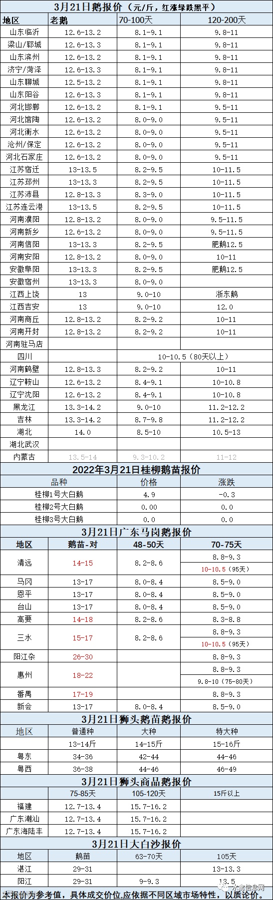 2022年3月21日鹅种蛋价格(元/枚)部分停报