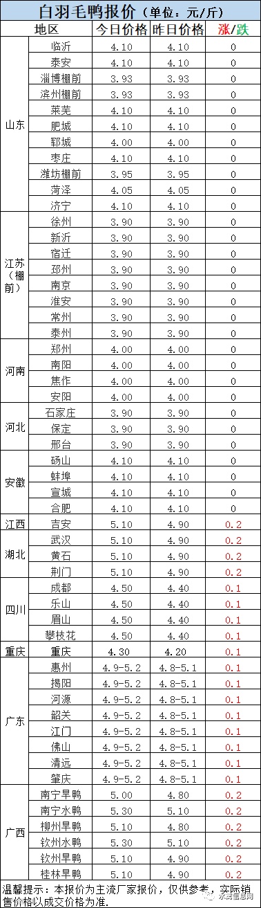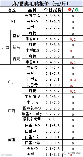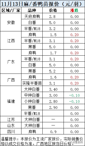明日麻鸭苗报价上涨0.2元/羽。半番鸭苗报价上涨0.2元/羽。