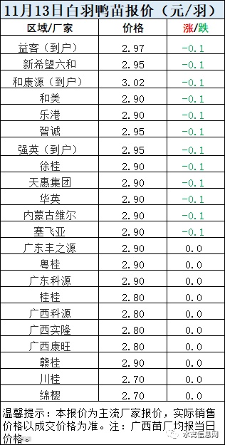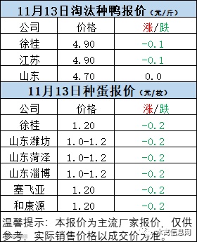 一、11月12日晚至11月13日 白羽肉鸭报价