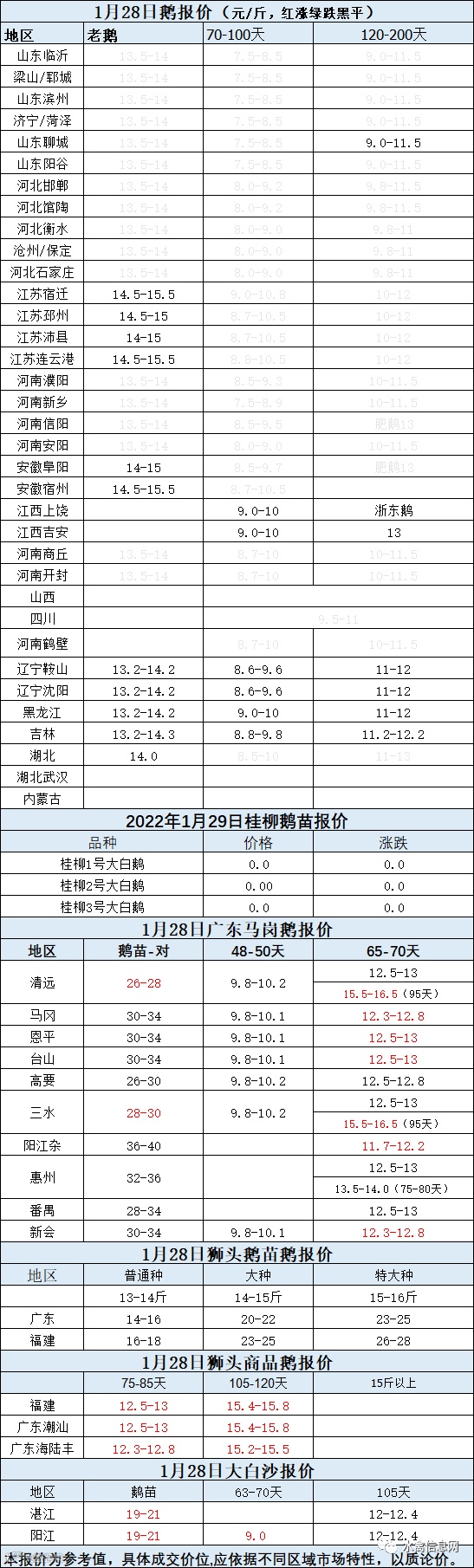 2022年1月28日各品种鹅苗价格