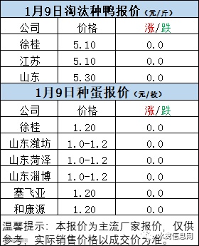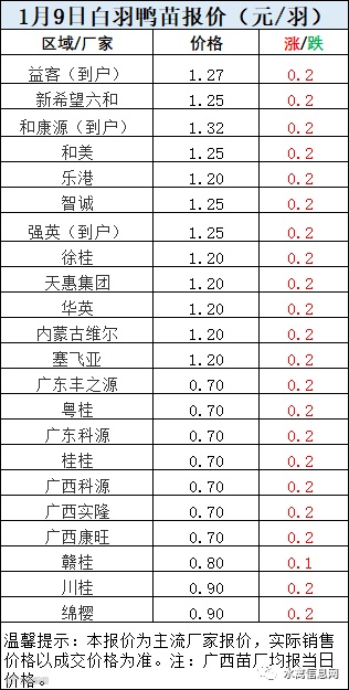 一、1月8日晚至1月9日 白羽肉鸭报价