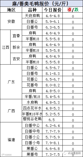 明日麻鸭苗报价弱稳。半番鸭苗报价稳定。