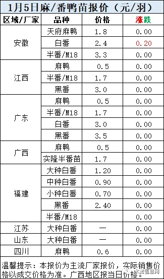 明日麻鸭苗报价稳定。半番鸭苗报价稳定。