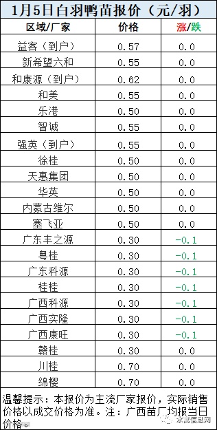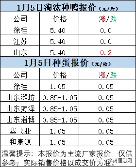 一、1月4日晚至1月5日 白羽肉鸭报价