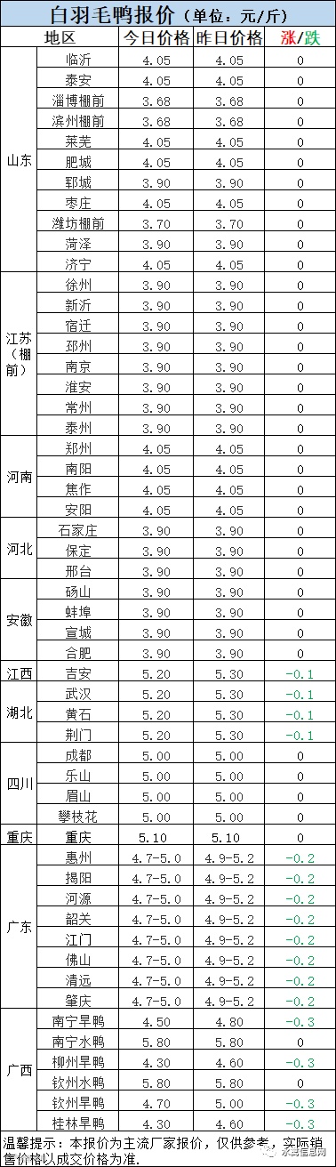 1:今晚北方毛鸭报价低位震荡,弱势调整。